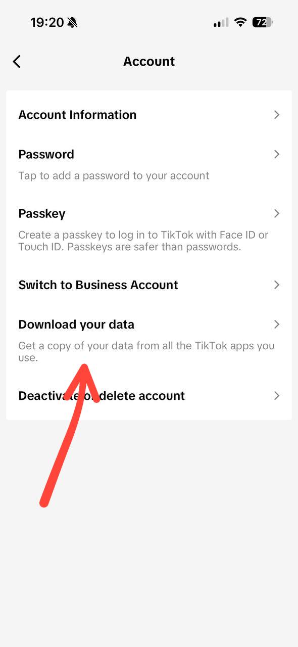 TikTok → Settings → Privacy → Download Data